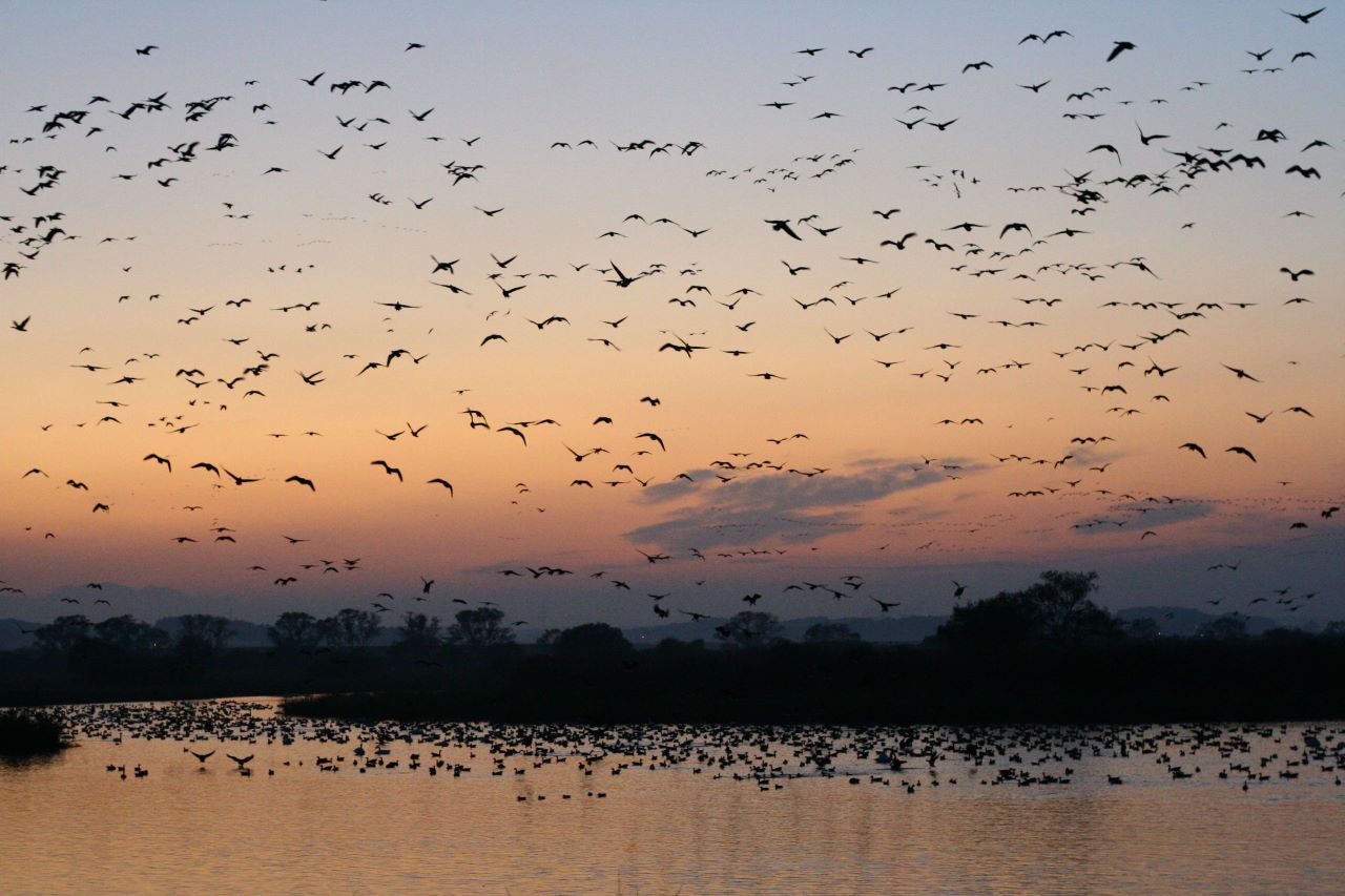 マガンの飛び立ち