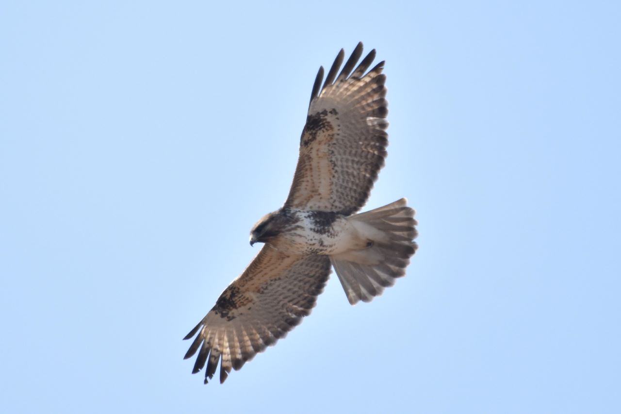 翼を広げて旋回するノスリ