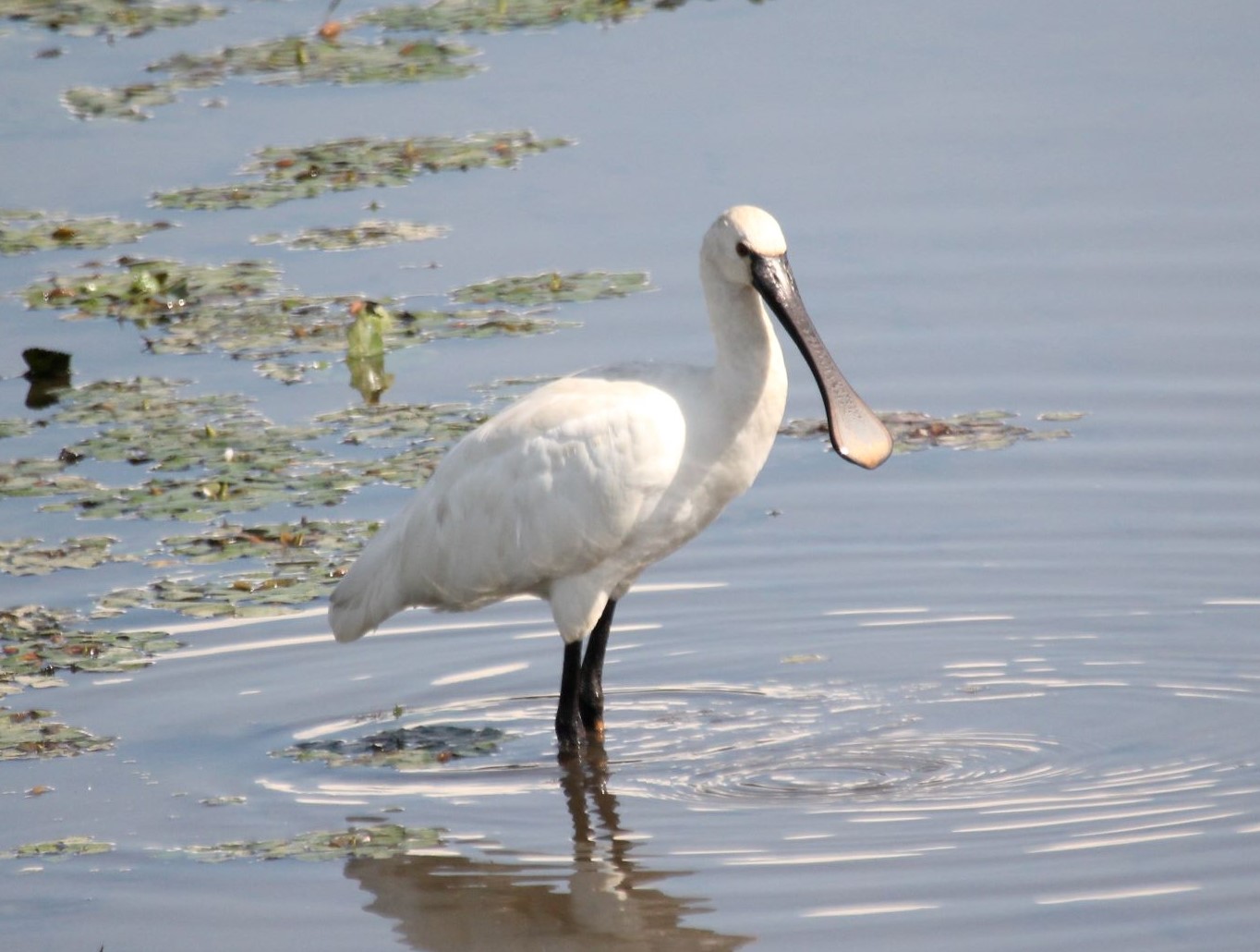 ペリカン目トキ科の大型の水鳥で、全長は約85cm、翼開長は約125cmになる。くちばしがスプーン状になっており、この部分を水中に入れ て触れた魚を捕まえて食べる。あまり日本では見られない鳥だが、蕪栗沼では2000年から20年以上にわたって確認されている。同一個体かは不明 である。