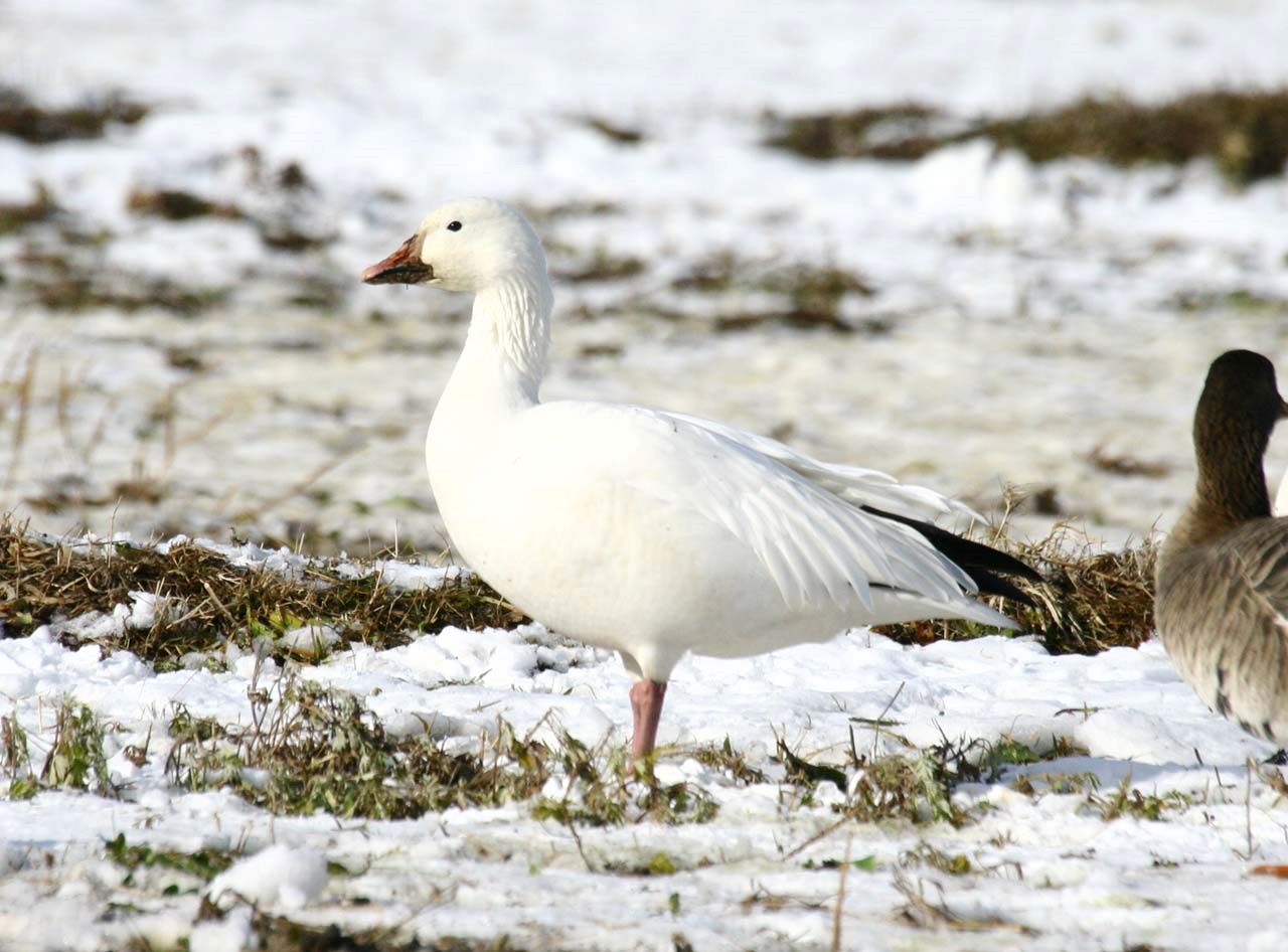 カモ目カモ科の大形の水鳥で、全長約75cm翼開長140cmである。マガンとほぼ同じ大きさかやや大きい。翼の先端が黒いほか体の大部分が 白い。蕪栗沼では、まれに数羽が見られるのみである。日本には約千羽が飛来し、伊豆沼を主なねぐらとしている。