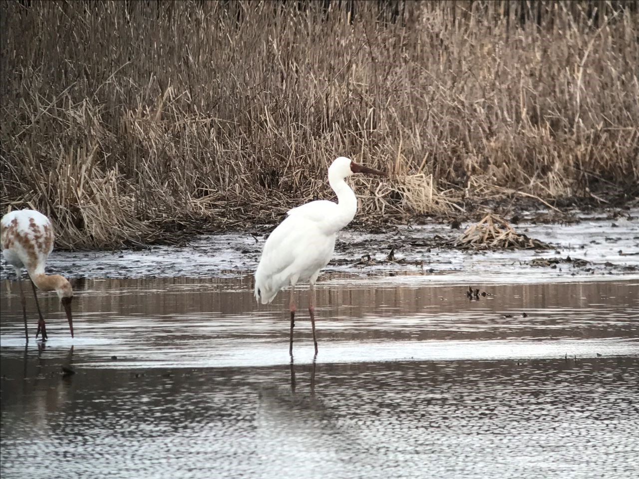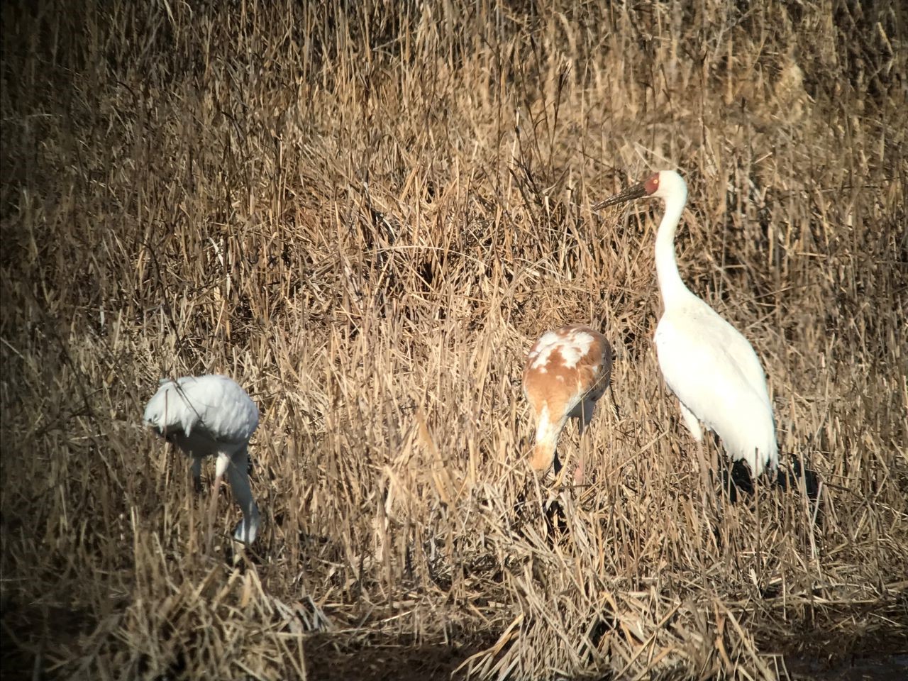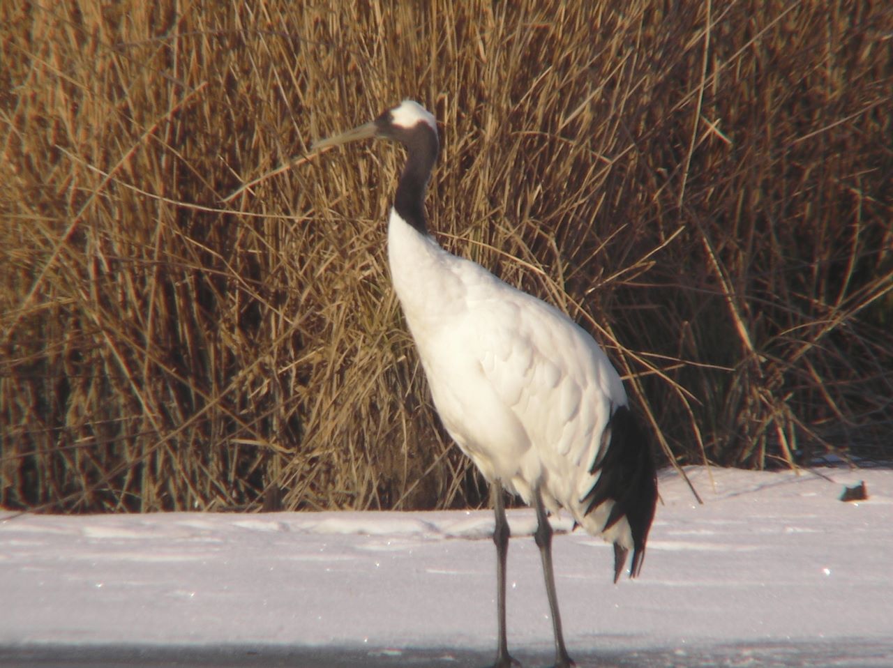 ツル目ツル科の大型の水鳥で、全長約125cm、翼開長約240cmにもなる。蕪栗沼には2010年の1月頃から姿を現し、 2011,2012年の3シーズン姿を見せたが同一個体かは不明である。オオヒシクイのいる開水面や、沼の南の水田で見られた。
