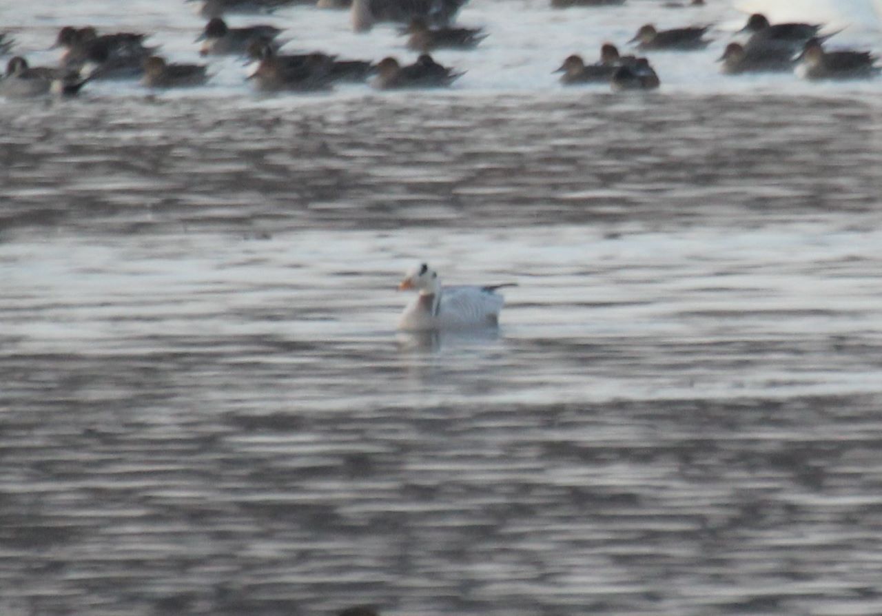 カモ目カモ科の中型の水鳥で、全長約75cm翼開長150cm。白い体に棒状の斑があるのが特徴である。蕪栗沼には2015年12月9日に一 度だけ姿を見せた。インドガンは各地の動物園で飼育されており、野生個体かどうかは不明である。