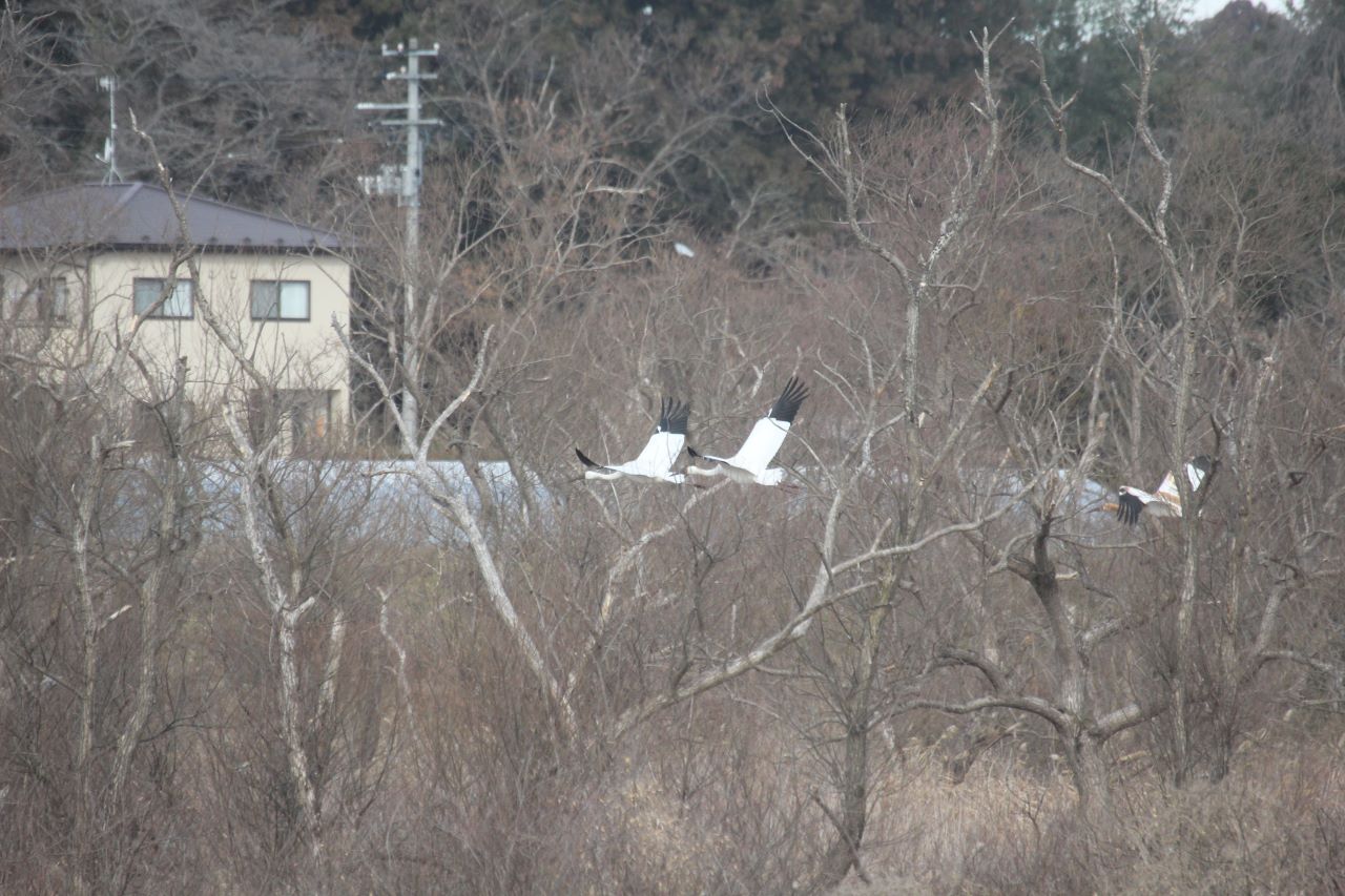 飛ぶタンチョウ