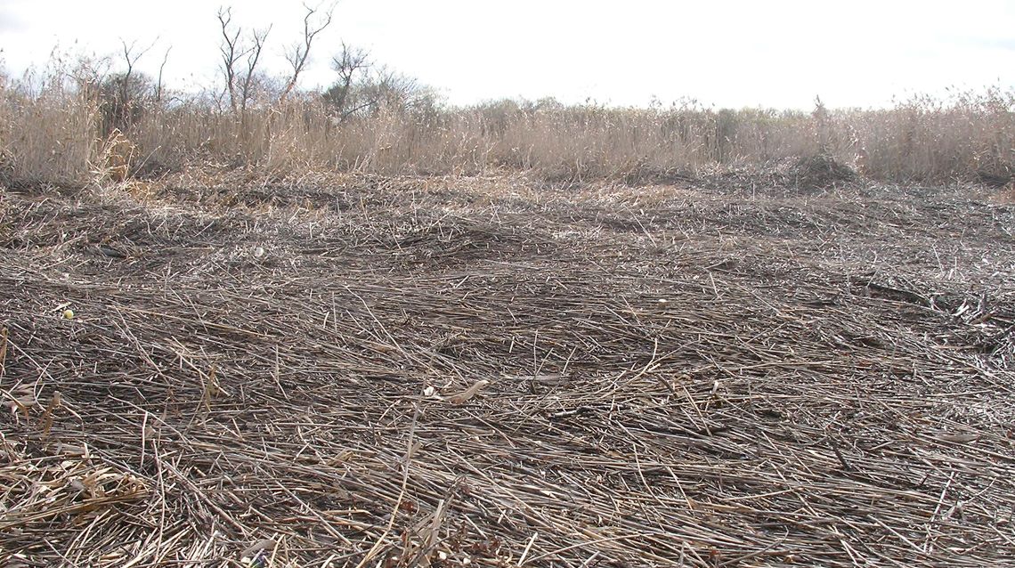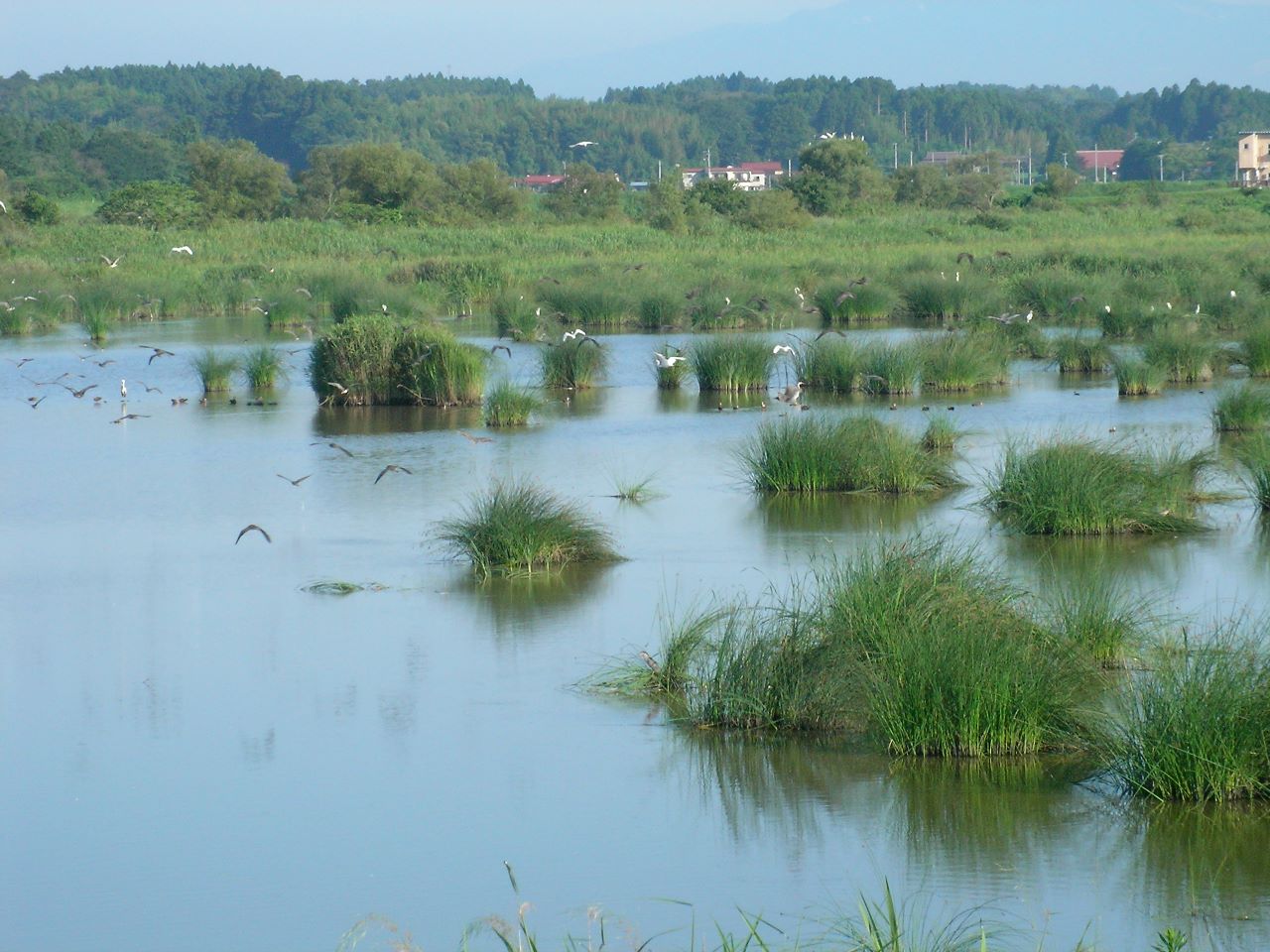 蕪栗沼は面積の半分以上が「谷地」と呼ばれる湿地帯で、増水時のみ水没する陸地です。その大部分がヨシという植物で覆われています。ヨシは刈 り取りをしないで放置すると堆積し、植物が生えなくなったり、陸地化して森林に遷移したりします。