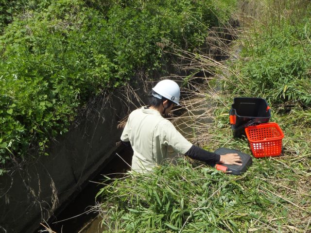 遊水地の管理のためには、土砂の撤去や堤防の補修、樹木管理など様々な土木作業が必要です。こうした行為が野生生物に影響を与えていないかを調べ るのが動植物モニタリング調査です。