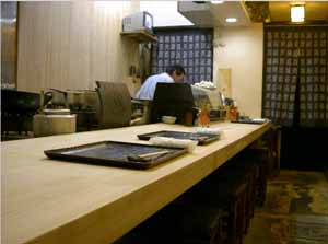 店内は白木のカウンターで10席ほどですが、明るく清潔感があります。
